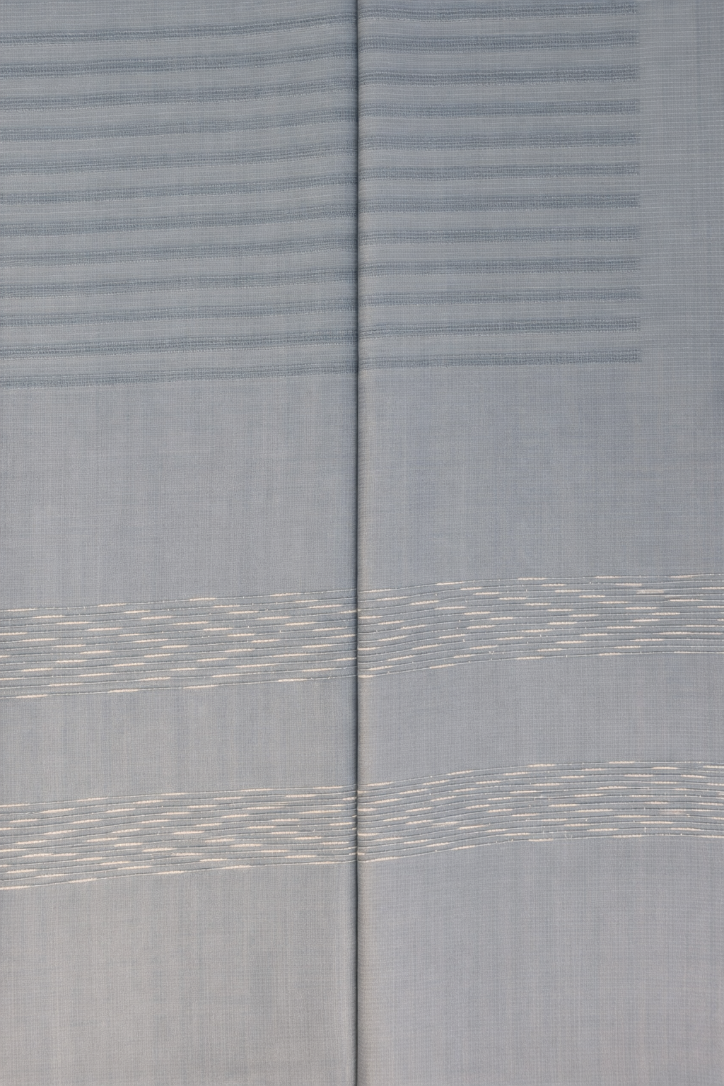 A graceful tealgrey Moonga silk saree with a soft sheen and lightweight drape, featuring subtle woven detailing on the pallu. Elegant, minimal, and perfect for festive or formal occasions.